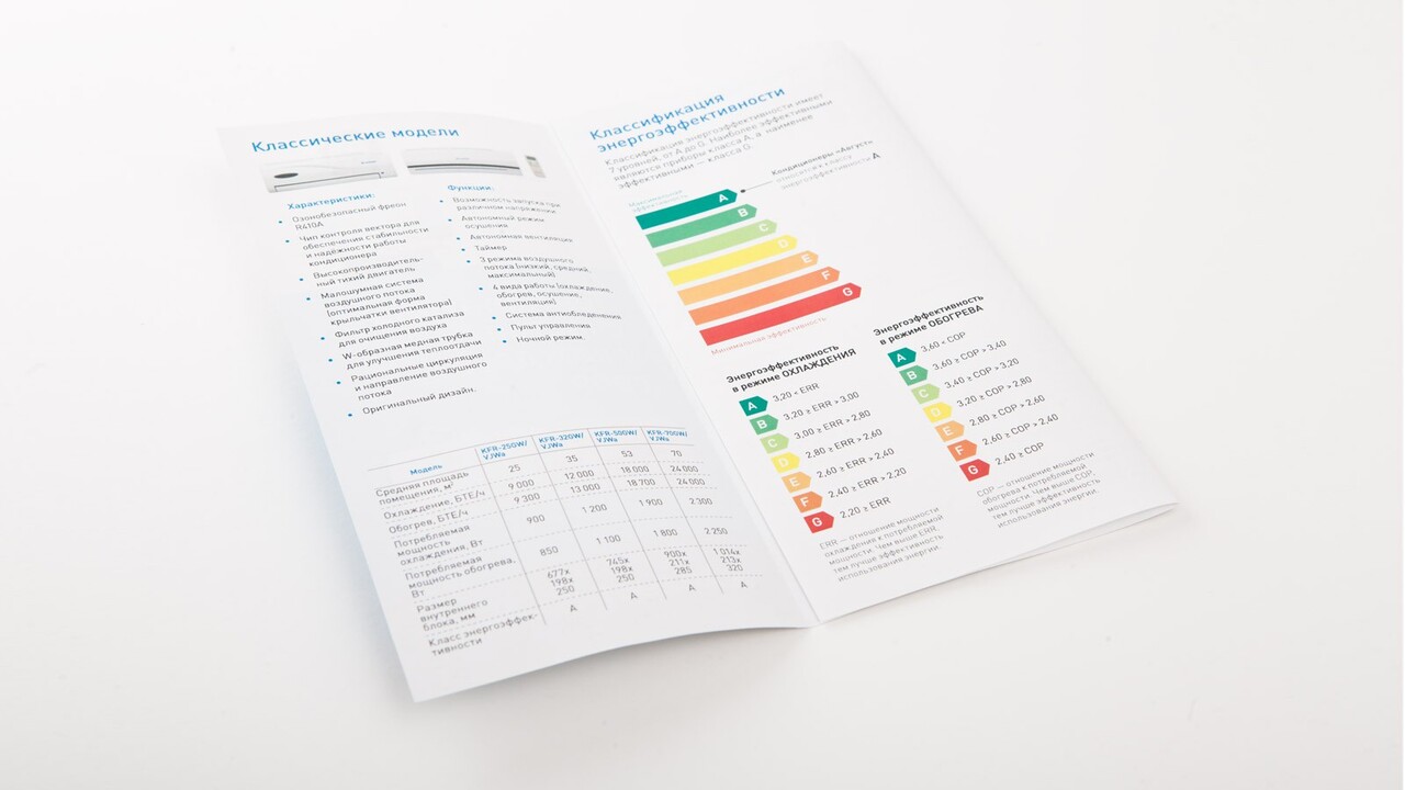 Оборотная сторона буклета с советами по эксплуатации превращает его в полезную инструкцию для новоиспечённых владельцев кондиционеров и адресную книгу для потенциальных покупателей, пока только думающих о том, чтобы приобрести экземпляр полезной техники.