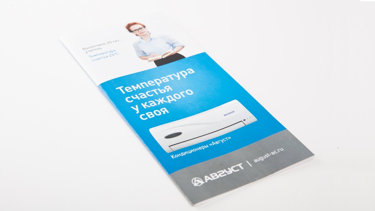 ЗАДАЧА: Выпустить буклет, оформленный в соответствии со стилистикой  рекламной кампании кондиционеров «Август».