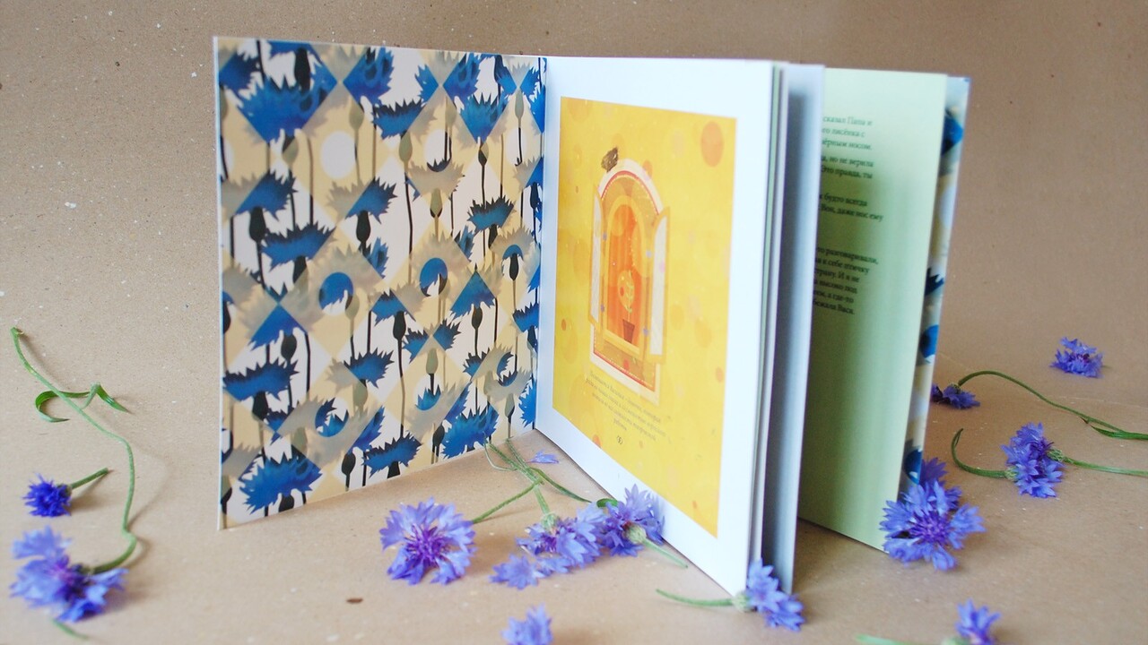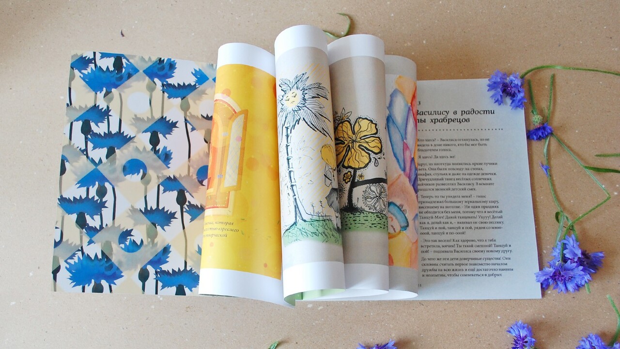 РЕШЕНИЕ: Василиса просто по определению должна быть без ума от васильков, которыми мы щедро украсили сборник. Каждый разворот обзавелся своим рассказом и большой красочной иллюстрацией для того, чтобы маленькая читательница не заскучала, пока мама будет рассказывать ей истории из эксклюзивной книги. А чтобы сборник стал поистине уникальным, каждую историю, и каждую иллюстрацию с любовью создавали все одаренные дизайнерским талантом жители нашего Творкен Мира.