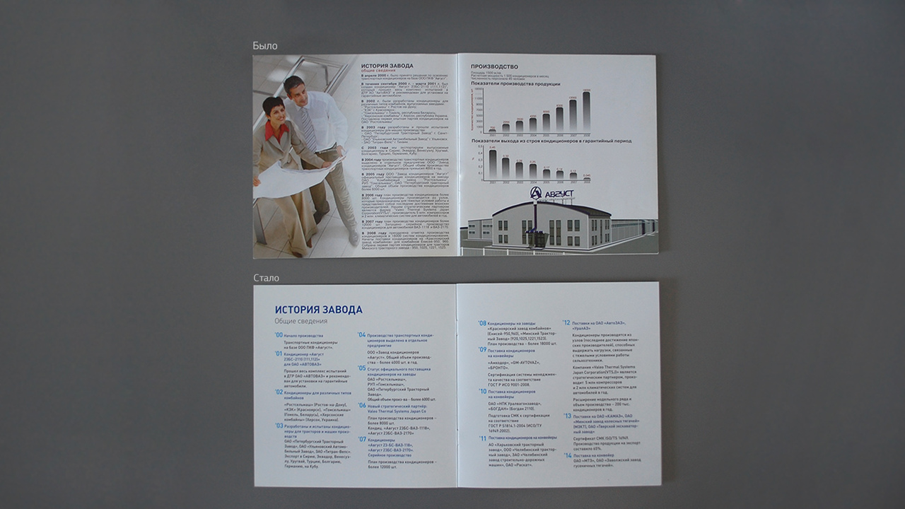 ЗАДАЧА: сделать редизайн буклета с транспортными кондиционерами завода «Август».