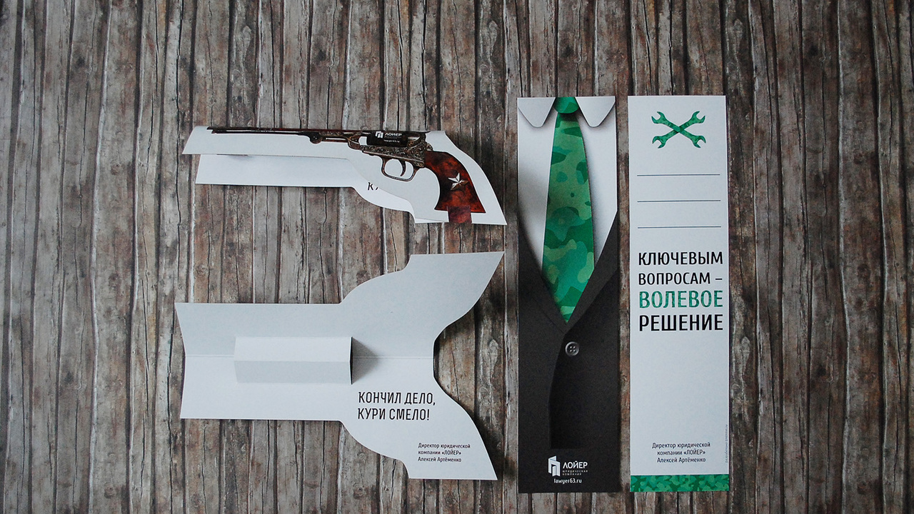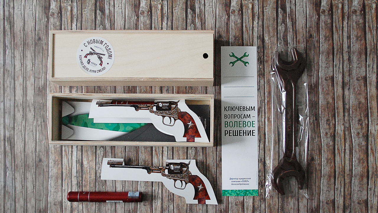 РЕШЕНИЕ: Компания и партнёры занимаются услугами ликвидации юридических лиц. В связи со сферой занятости существует собственный профессиональный язык. Мы выбрали два основных образа — шоколадный ключ как символ регулирования бизнес-ситуаций и сигару как иллюстрацию идиомы "Кончил дело — закурил".