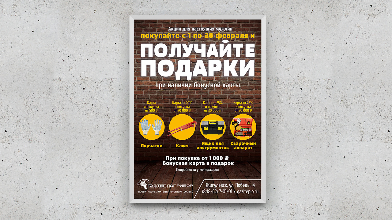 ЗАДАЧА: разработать материалы февральской акции для компании-продавца бытовых коммуникаций «Газтеплоприбор»