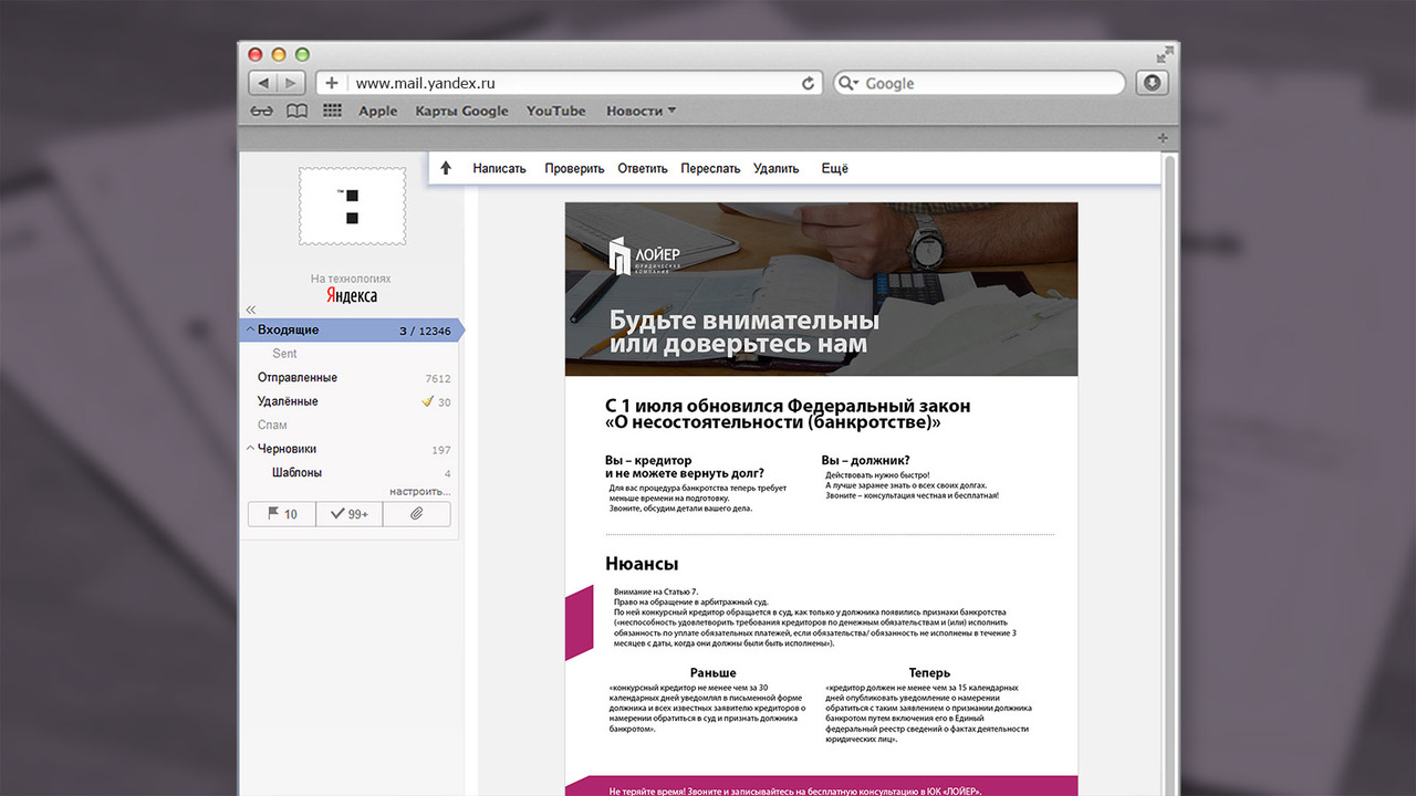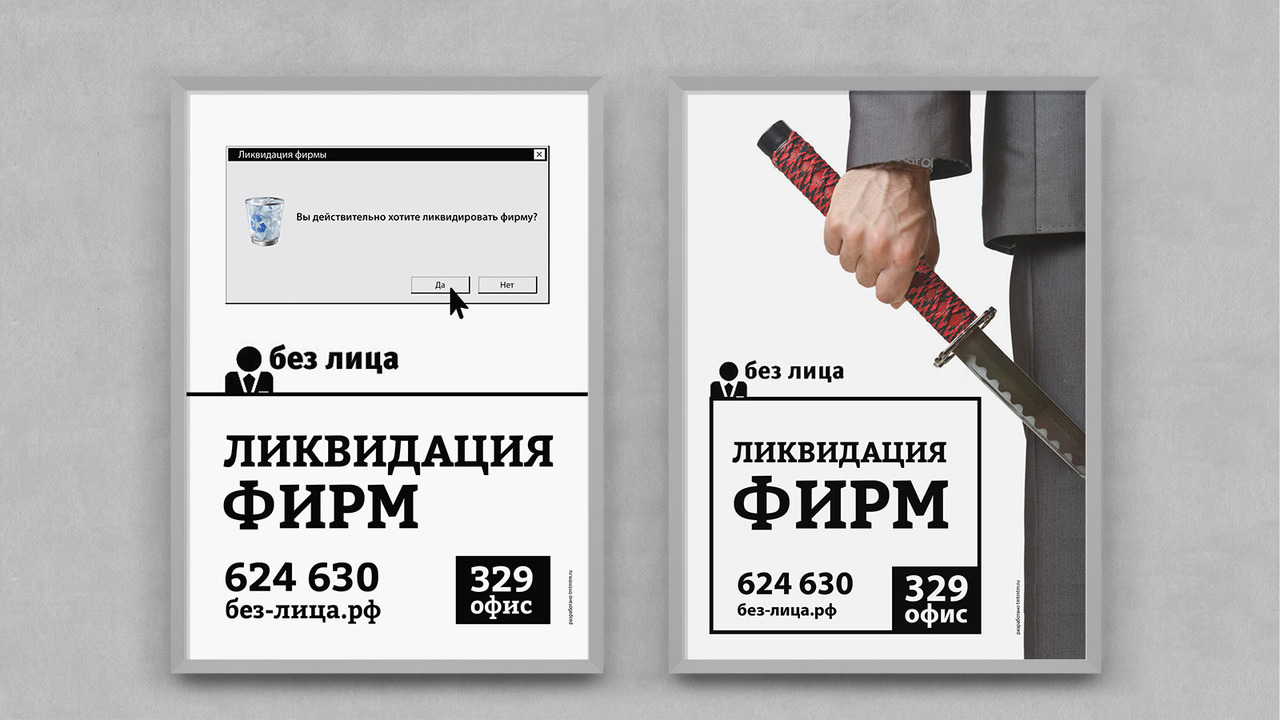 РЕШЕНИЕ: было предложено несколько рекламных концепций. Помимо этого созданы дополнительные инструменты, помогающие в работе: схемы ликвидации компании, бланки ответа на звонок, листовки, рассылка.